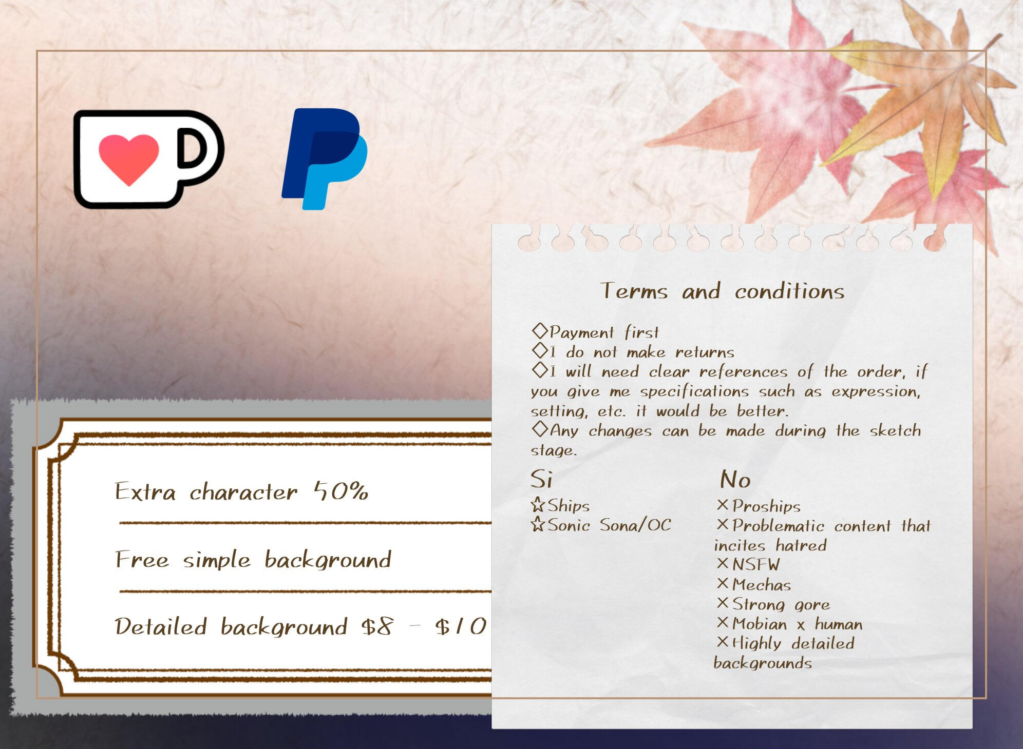 It will probably take me a while to answer so please be patient with me, if I reject a commission I will inform you directly.Please read everything before placing an order, you are responsible for whether you place it or not, if you have any questions you can contact me by email or social networks.